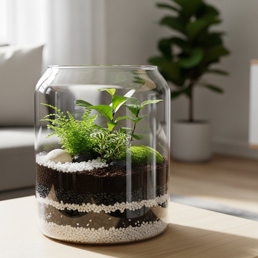 Indoor plant terrariums are miniature gardens that bring elegance and creativity into your living room. Using glass containers, you can create layered designs with soil, pebbles, and small plants. Terrariums are low-maintenance and perfect for adding greenery to coffee tables or shelves. They also serve as beautiful conversation pieces. This DIY project combines art and nature in a compact form.