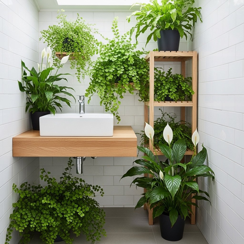 Bathrooms often have unused corners that can be transformed with humidity-loving plants. Plants like ferns or peace lilies thrive in moist environments. Adding a small plant near the sink or bathtub creates a spa-like atmosphere. It also improves air quality and freshness in the room. This idea is simple but highly effective for small bathrooms.