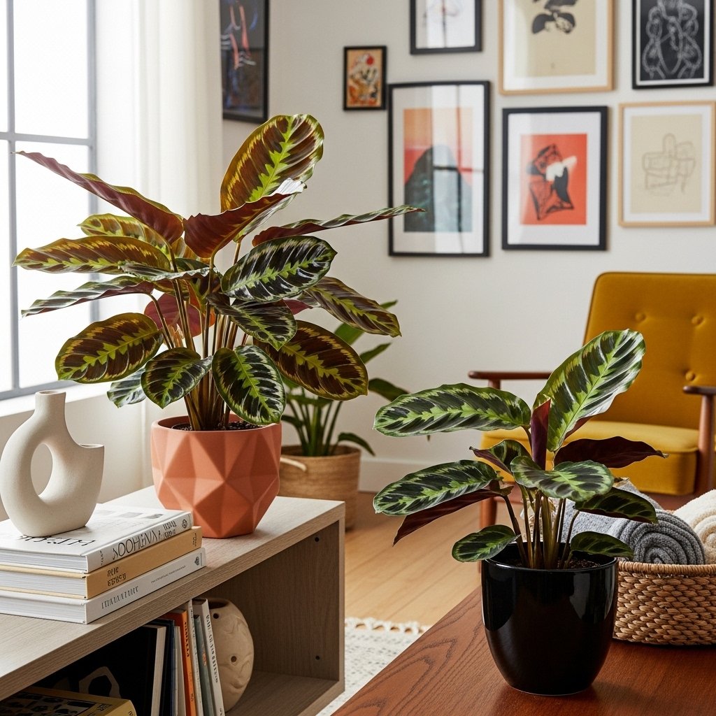 Calathea plants are known for their unique, patterned leaves, making them perfect for adding artistic flair to your living room. Their bold textures and striking colors stand out in modern and eclectic spaces alike. Calatheas thrive in indirect light and appreciate regular watering and humidity. They are perfect for tabletops, shelves, or plant stands where their leaves can be fully admired. This plant adds personality and visual interest while maintaining a calm, natural vibe.