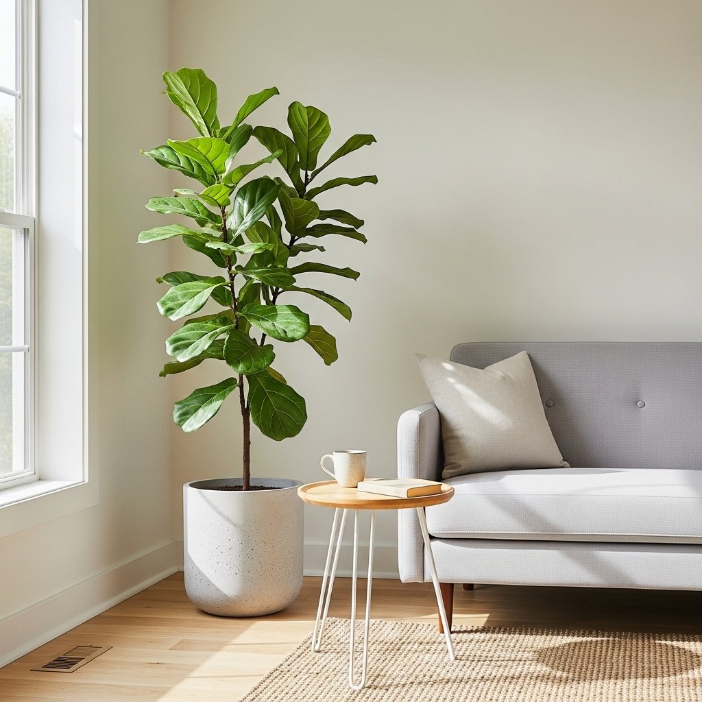 The Fiddle Leaf Fig has become a staple for modern living room decor thanks to its dramatic, glossy leaves and tall stature. It works perfectly in bright, indirect light and can grow into a stunning floor plant that becomes a natural focal point. Pair it with a stylish pot or stand to complement your living room’s color palette. Its bold leaves contrast beautifully with neutral furniture, making it ideal for minimalist or contemporary spaces. Regular watering and occasional leaf cleaning keep it looking fresh and vibrant.