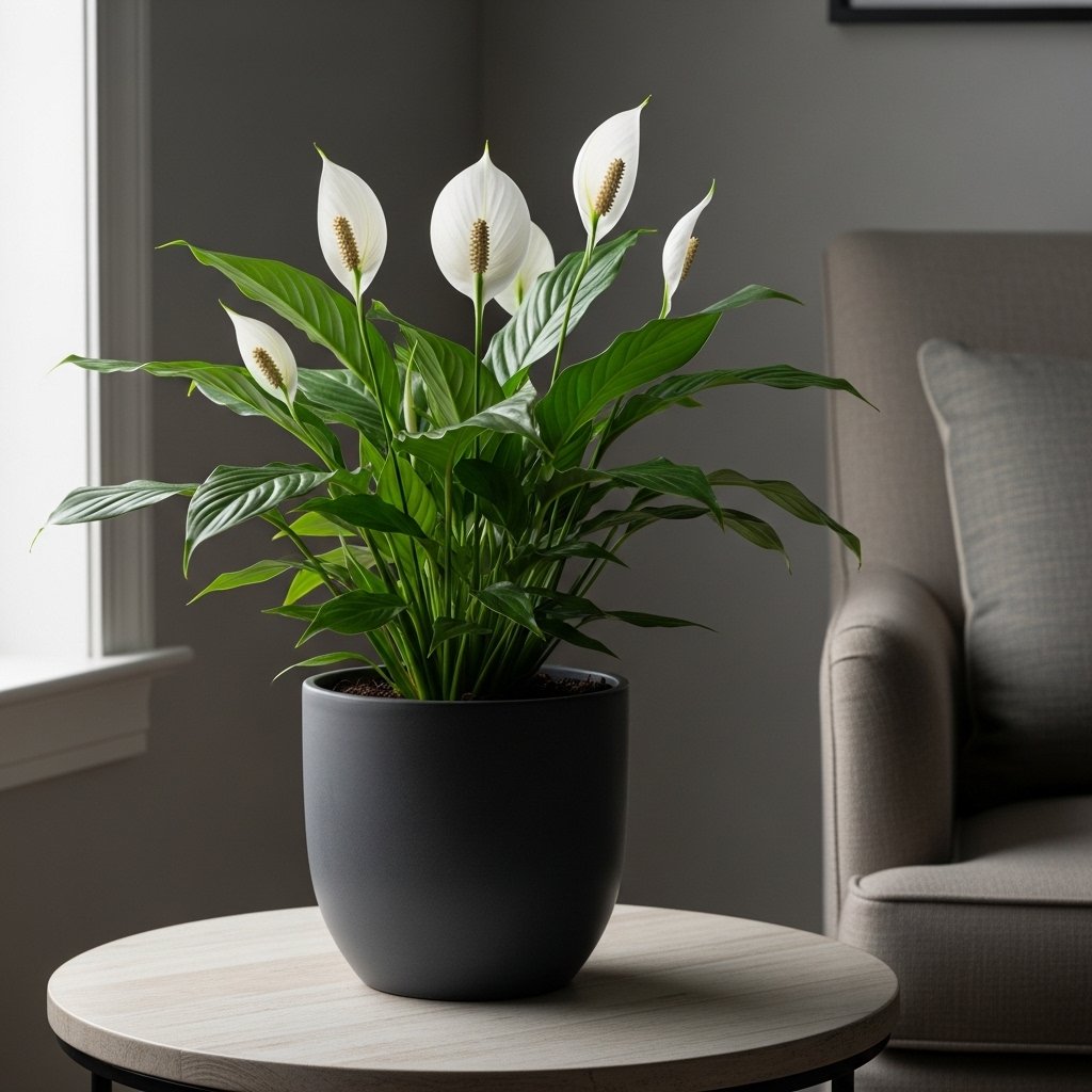 Peace Lilies are elegant plants that bring tranquility and style to living room decor. Their glossy green leaves and white blooms create a calming visual contrast, perfect for brightening dark corners. Peace Lilies thrive in indirect light and require moderate watering, making them suitable for most homes. They also naturally purify the air, adding functional value to their beauty. Placing them near seating areas or on side tables makes them a soft, elegant statement piece.