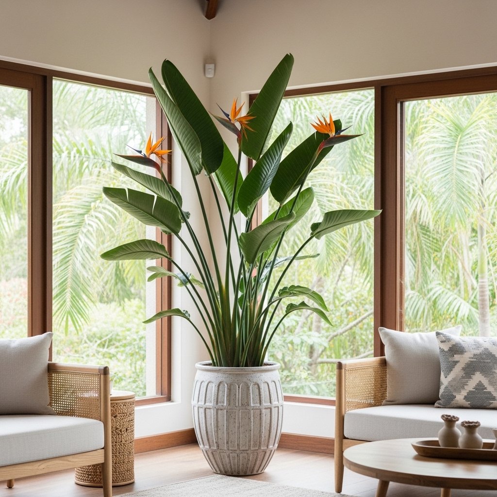 Bird of Paradise is a tropical plant that adds drama and height to your living room. Its large, banana-like leaves bring a vibrant and exotic feel to any decor style. It thrives in bright, indirect light and requires moderate watering, making it slightly more high-maintenance but worth the effort. Pairing it with a stylish planter elevates its bold silhouette. This plant is perfect for corners or as a statement piece near windows to create a resort-like ambiance.