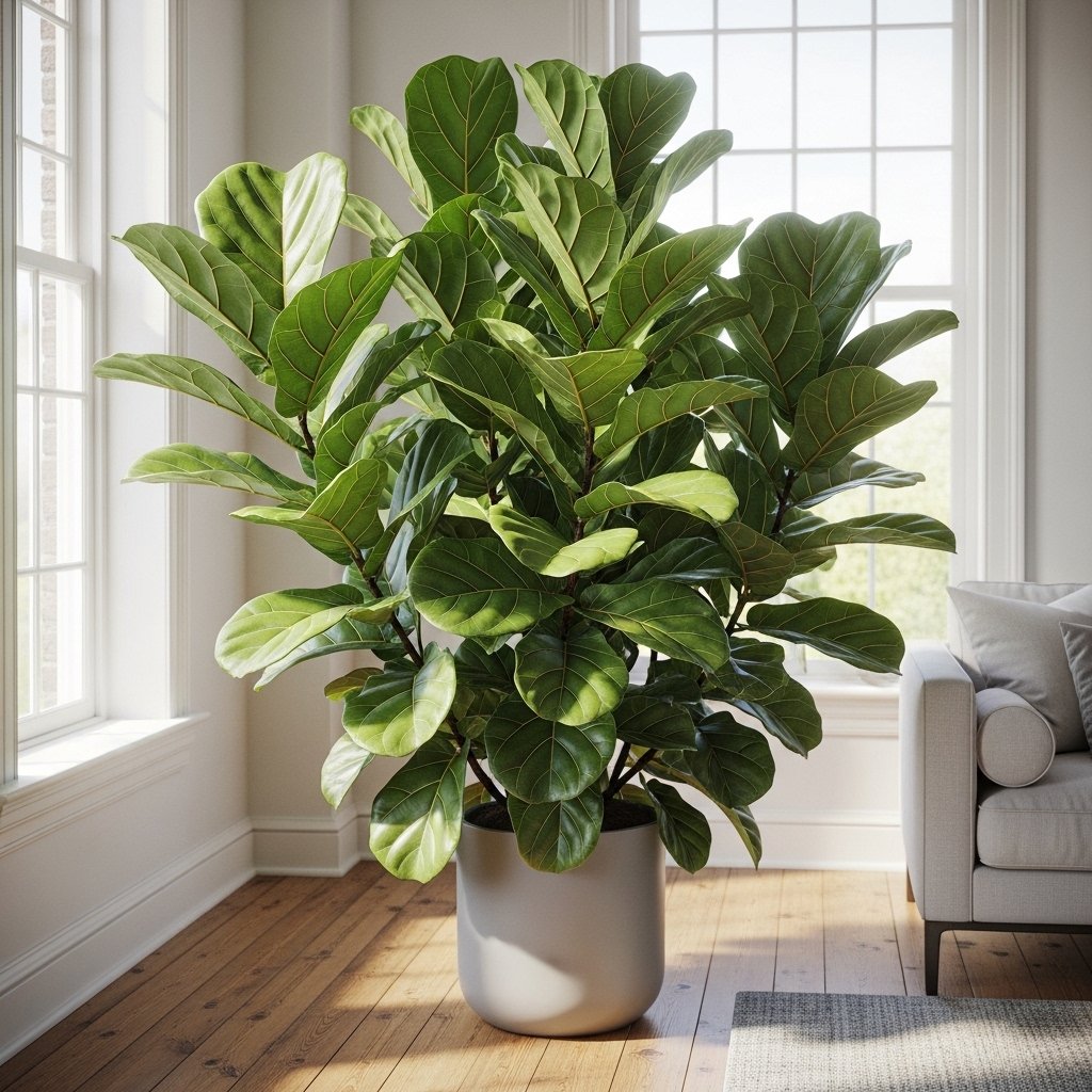 The fiddle leaf fig is a living room favorite due to its dramatic, large leaves and sculptural presence. Its upright growth makes it ideal for corners or next to large windows, creating a natural focal point. This plant thrives in bright, indirect light, making it perfect for well-lit living spaces. Pair it with minimalist planters to enhance its elegance. Regularly dusting the leaves helps maintain its glossy look while keeping it healthy.