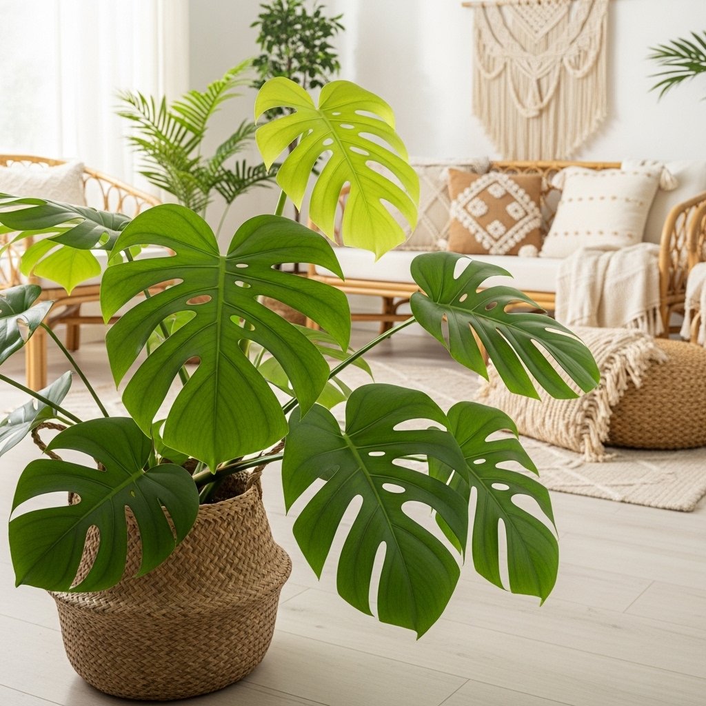 Monstera deliciosa, also known as the Swiss cheese plant, is loved for its large, perforated leaves and tropical vibe. It adds instant visual interest and works well in modern, boho, or eclectic living rooms. Monstera thrives in bright, indirect light and moderate watering schedules. Its versatile style allows placement on the floor, in plant stands, or even on side tables. Pairing it with woven baskets or ceramic pots enhances its natural, organic charm.