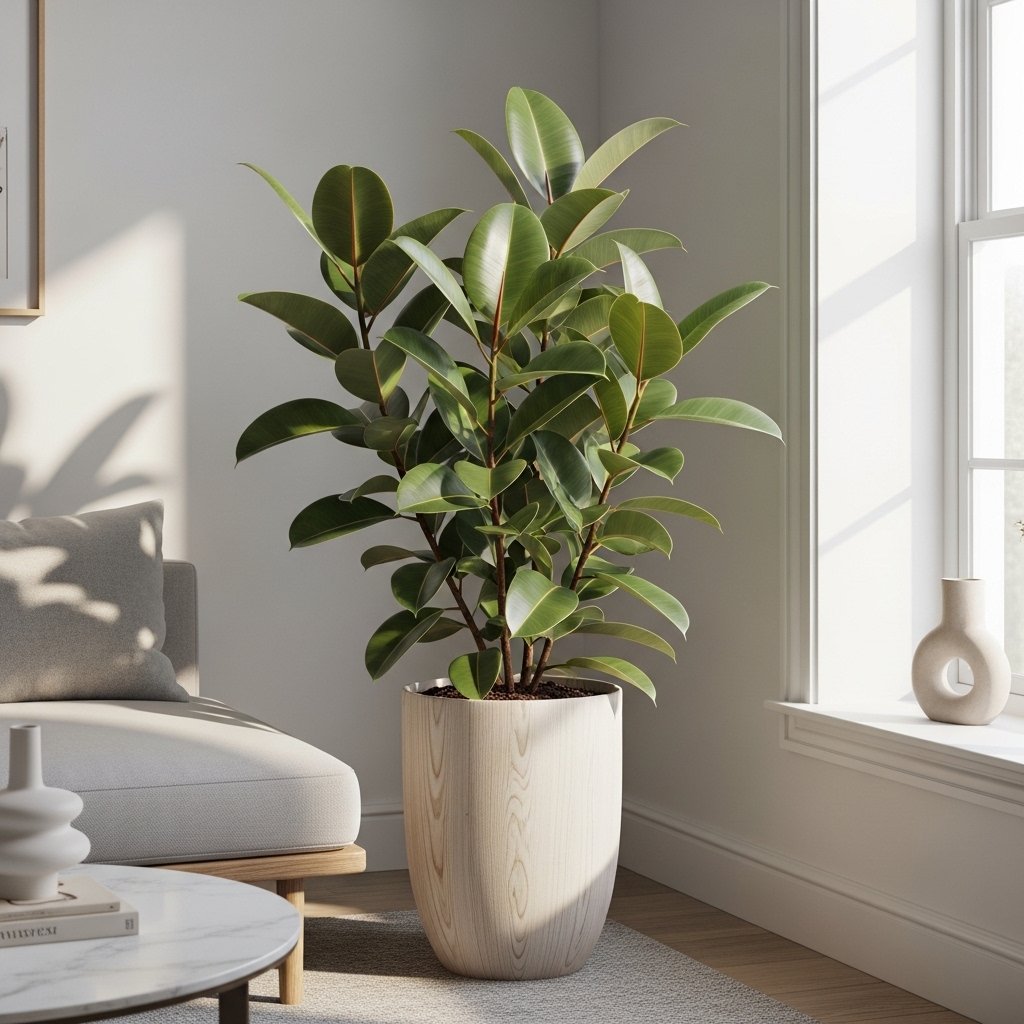 The rubber plant is a versatile choice for adding height and a pop of dark green to your living room. Its thick, glossy leaves make it a standout even in rooms with minimal decoration. Rubber plants thrive in bright, indirect light and need occasional watering. They are ideal for statement corners, next to sofas, or as part of a plant cluster. Pairing with neutral pots and wooden plant stands enhances its sophisticated appeal.