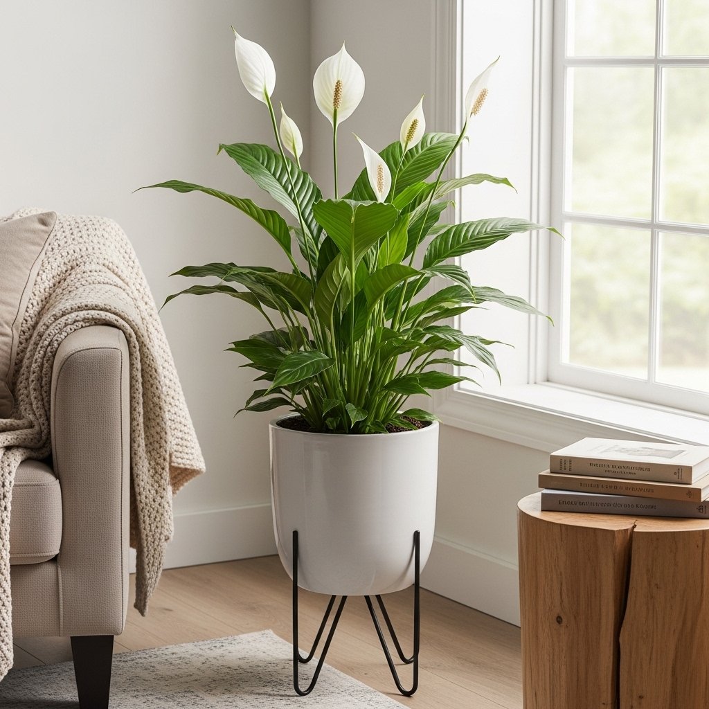 Peace lilies are elegant plants that combine glossy leaves with beautiful white blooms, perfect for sophisticated living rooms. They thrive in low to medium light, making them suitable for rooms with limited sunlight. Peace lilies also purify indoor air, removing common toxins and improving overall wellness. Pair them with decorative pots or elevated plant stands for a refined, airy feel. Regularly wiping the leaves ensures they maintain their fresh, vibrant appearance.