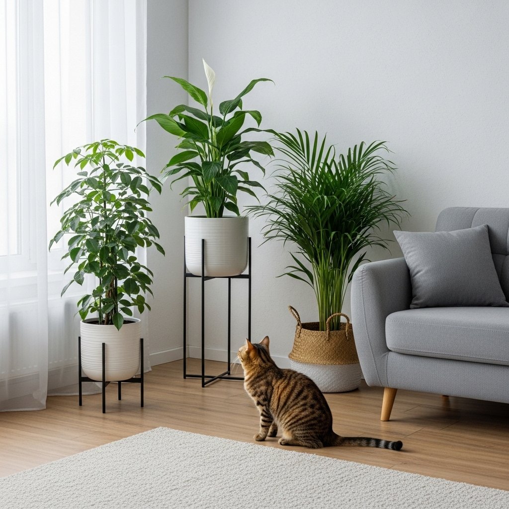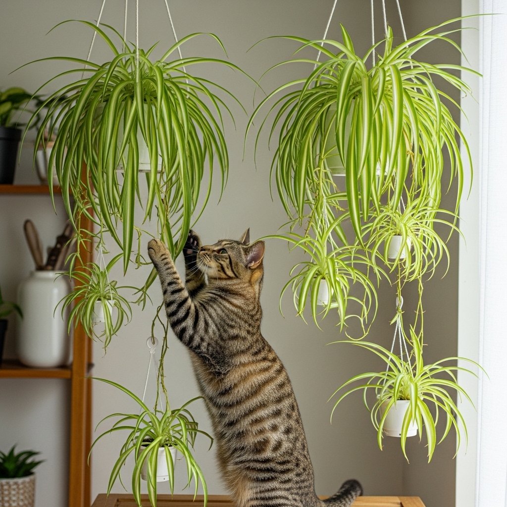 - Choose Safe Plants – Keep only non-toxic plants like spider plant or calathea that are safe for cats.