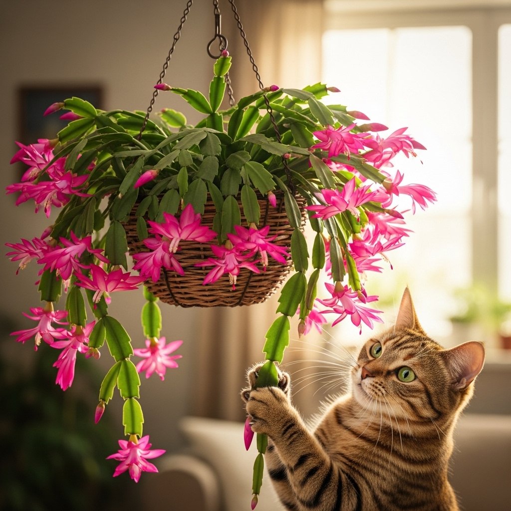The Christmas cactus is a festive indoor plant that produces beautiful blooms during the holiday season. It is non-toxic to cats, making it a safe seasonal decoration. This plant prefers indirect light and slightly moist soil. Its trailing stems make it ideal for hanging baskets. With proper care, it can bloom year after year.