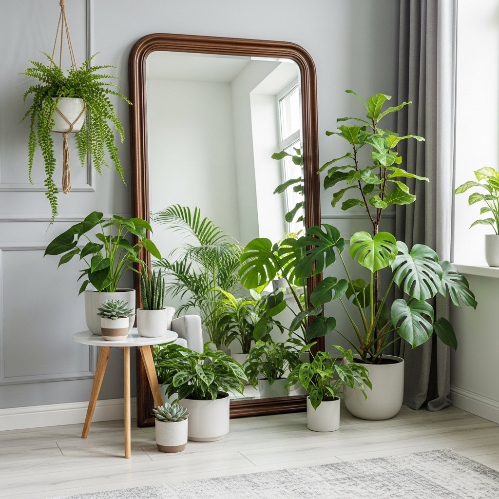 Using mirrors in indoor plant pictures creates depth and visual interest. Plants placed in front of mirrors appear larger and more lush in photographs. This technique also enhances natural light reflection in the room. It works especially well in small spaces to create an illusion of openness. The result is a stylish and modern interior aesthetic.