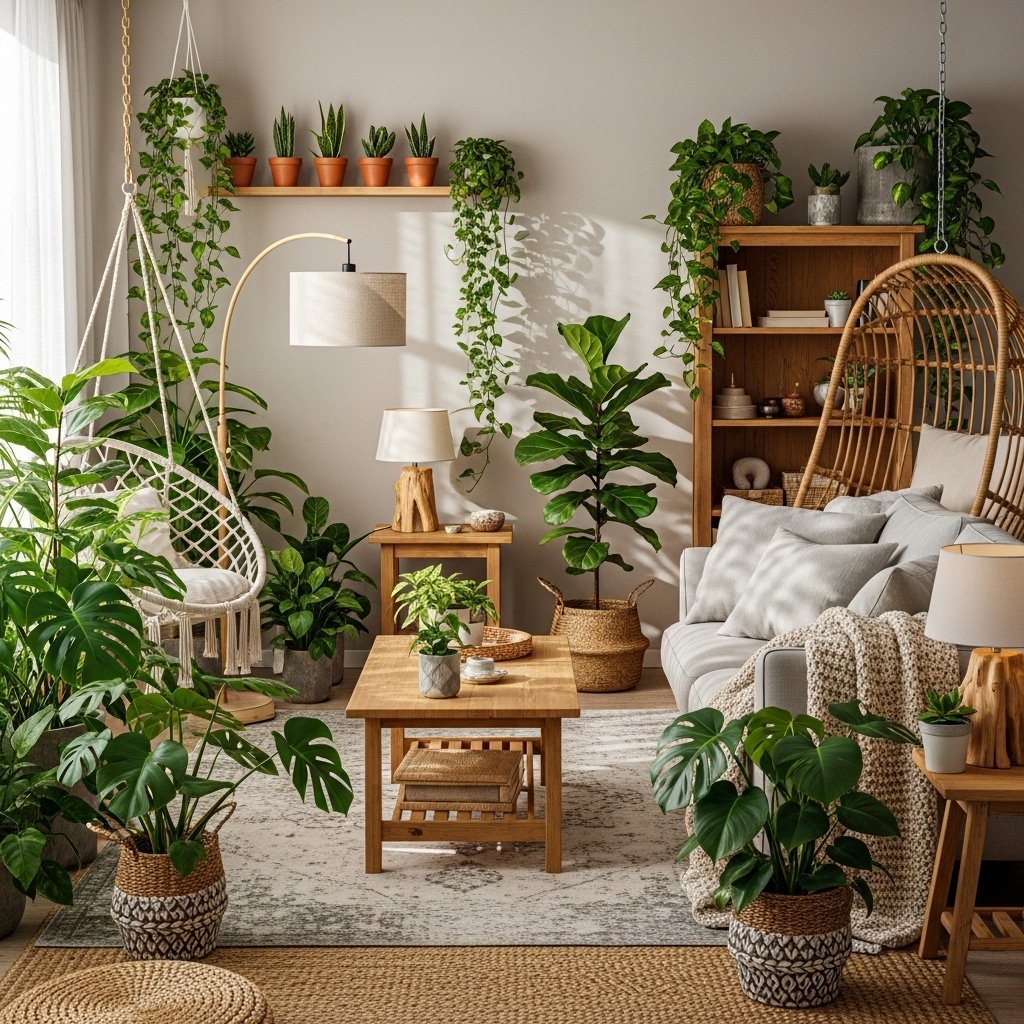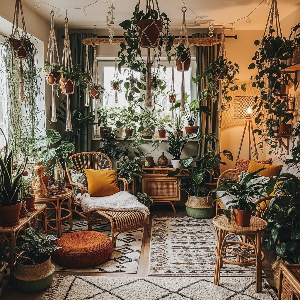 4. Boho Style Indoor Plant Arrangement
