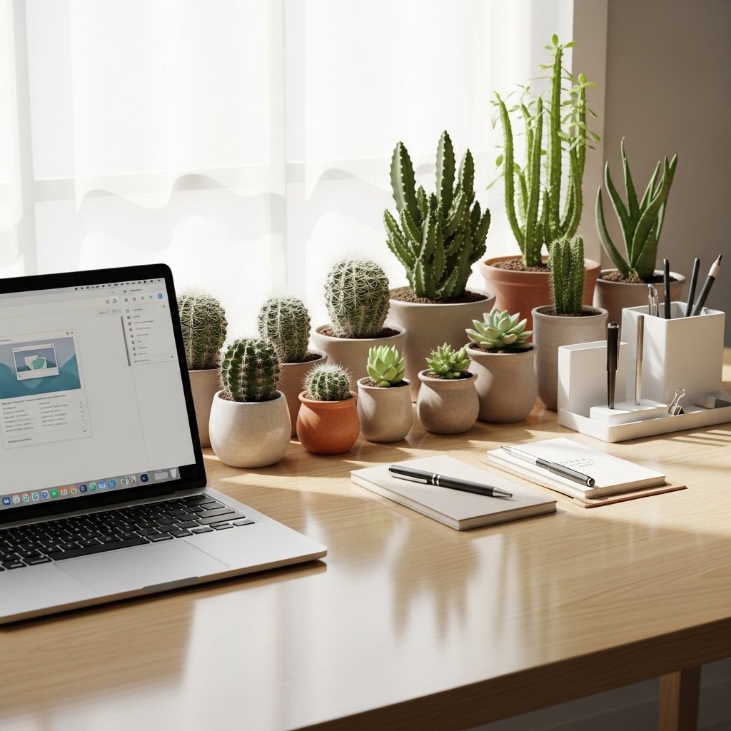 Desk indoor plants pictures show how small plants can enhance productivity and aesthetics. These images often feature compact plants like succulents or cacti placed on work desks. The addition of greenery makes the workspace feel more inviting and less stressful. Clean desk setups with a touch of nature create a balanced environment. These pictures are great inspiration for home offices or study areas.