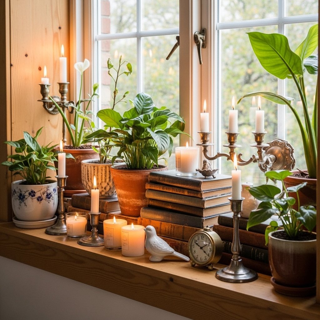 Mixing plants with small decorative items like candles, books, or figurines can create a more personalized display. This prevents the windowsill from looking overly uniform. Keep the balance by not overcrowding the space. Choose decor that complements the natural greenery. This idea adds character and reflects your personal style.