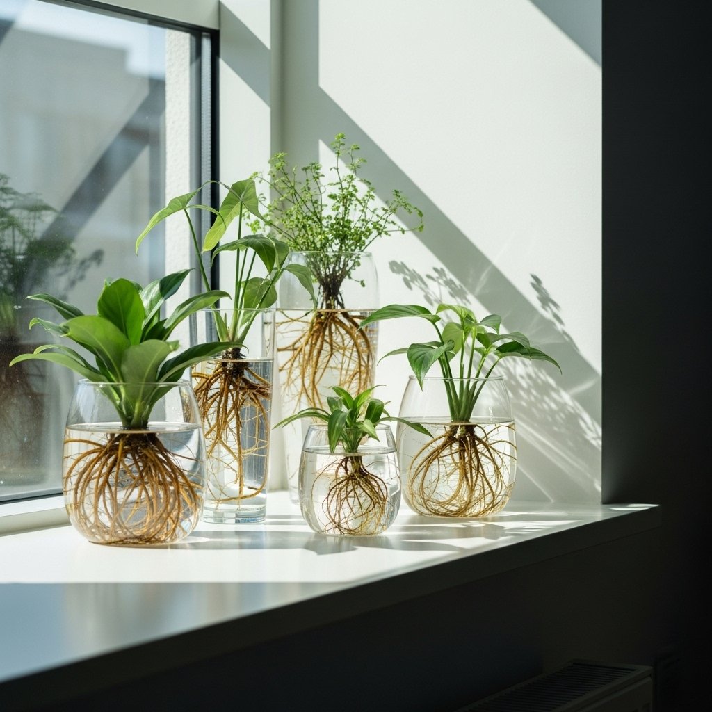 Glass pots or containers can give your windowsill a sleek and modern look. They allow you to see the roots and soil, adding an interesting visual element. This style works especially well with water-grown plants or simple greenery. Keep the water clean and fresh for the best appearance. It’s a unique way to display plants while keeping things minimal.