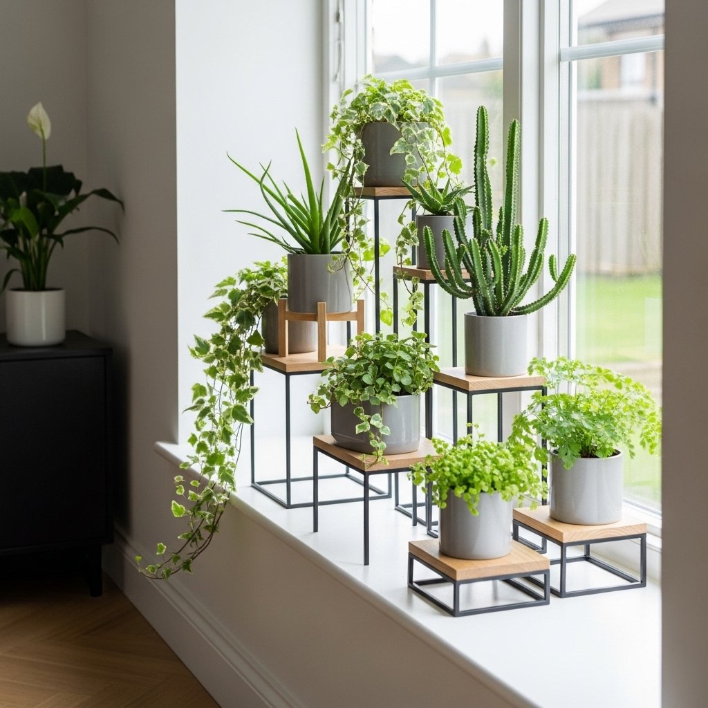 Adding small plant stands or risers can help vary the height of your arrangement. This creates dimension and makes the display more dynamic. You can use wooden blocks, metal stands, or even stacked books. Make sure the setup remains stable and safe. This technique is ideal for making your windowsill look professionally styled.