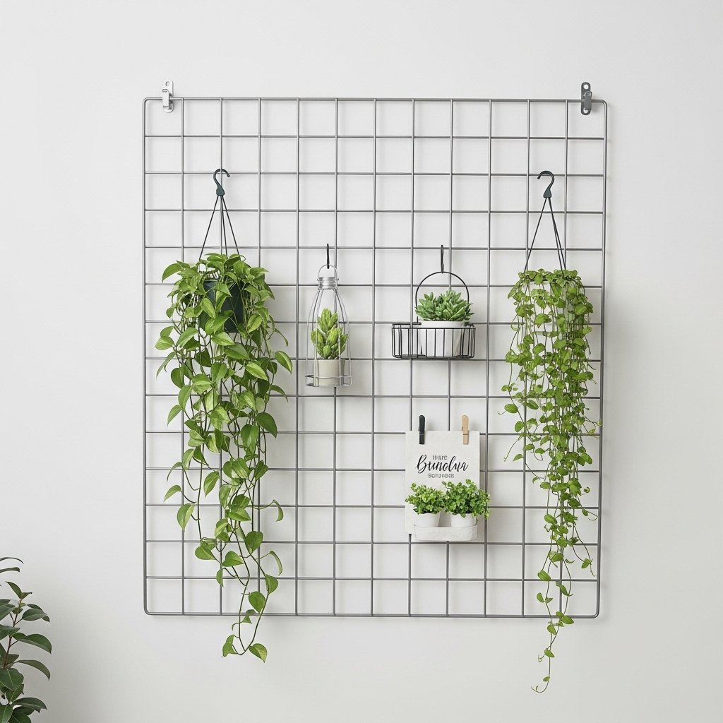 A wire grid panel trellis is a simple yet effective solution for indoor climbing plants. It’s easy to install and can be customized with clips or hooks. This design works well for trailing plants that need guidance. You can also use it to hang small planters or decorative items. It offers a clean and industrial look that suits many interior styles.