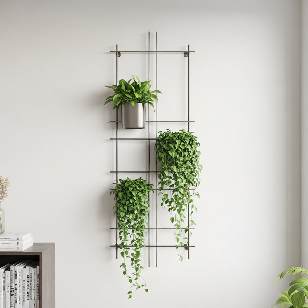 For a modern and sleek look, a minimalist metal trellis is an excellent choice. Its clean lines and simple design make it perfect for contemporary interiors. Metal trellises are durable and require very little maintenance compared to wood. They work well with trailing plants like pothos or string of hearts. This option blends functionality with a refined aesthetic, making your wall look elegant and organized.