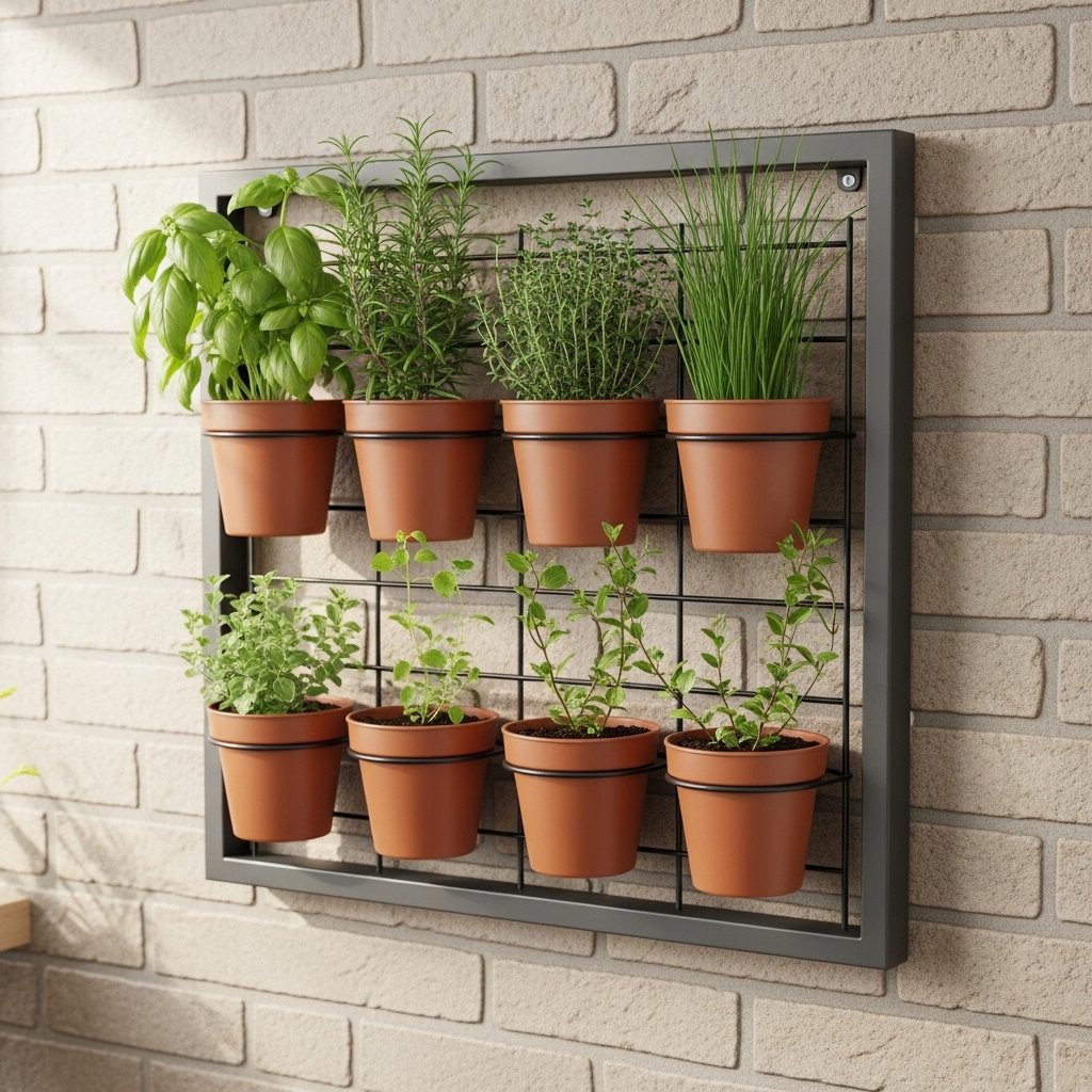 A wall-mounted planter with a built-in trellis is perfect for compact spaces. It allows you to grow plants vertically while keeping everything organized. These setups often include small pots attached to a trellis frame. This design is ideal for herbs or small climbing plants. It maximizes space efficiency while adding greenery to your walls.