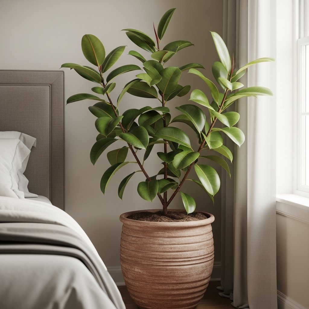 Rubber plants are hardy and adaptable, making them a top choice for low-light bedrooms. Their thick, glossy leaves bring elegance and a touch of the tropics to your indoor space. Rubber plants require minimal water and can tolerate lower light conditions, though indirect sunlight helps maintain leaf color. They also purify the air and create a calming, natural atmosphere. Placing a rubber plant in a corner or near a bedside table adds height, texture, and sophistication to your bedroom.