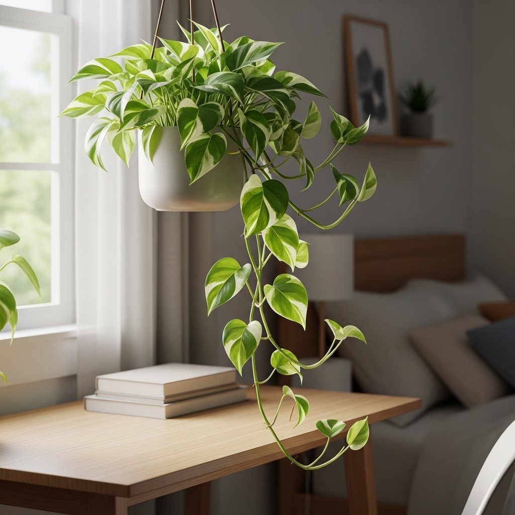 Pothos is a trailing vine that thrives in low light and is extremely easy to propagate. It comes in several varieties, including golden pothos, marble queen, and neon pothos, offering unique leaf patterns to suit your style. This plant can be placed on shelves, hung in planters, or allowed to climb supports, adding vertical greenery to your bedroom. Its air-purifying properties make it both decorative and healthy for indoor spaces. Pothos is forgiving, making it ideal for both novice and experienced plant owners.