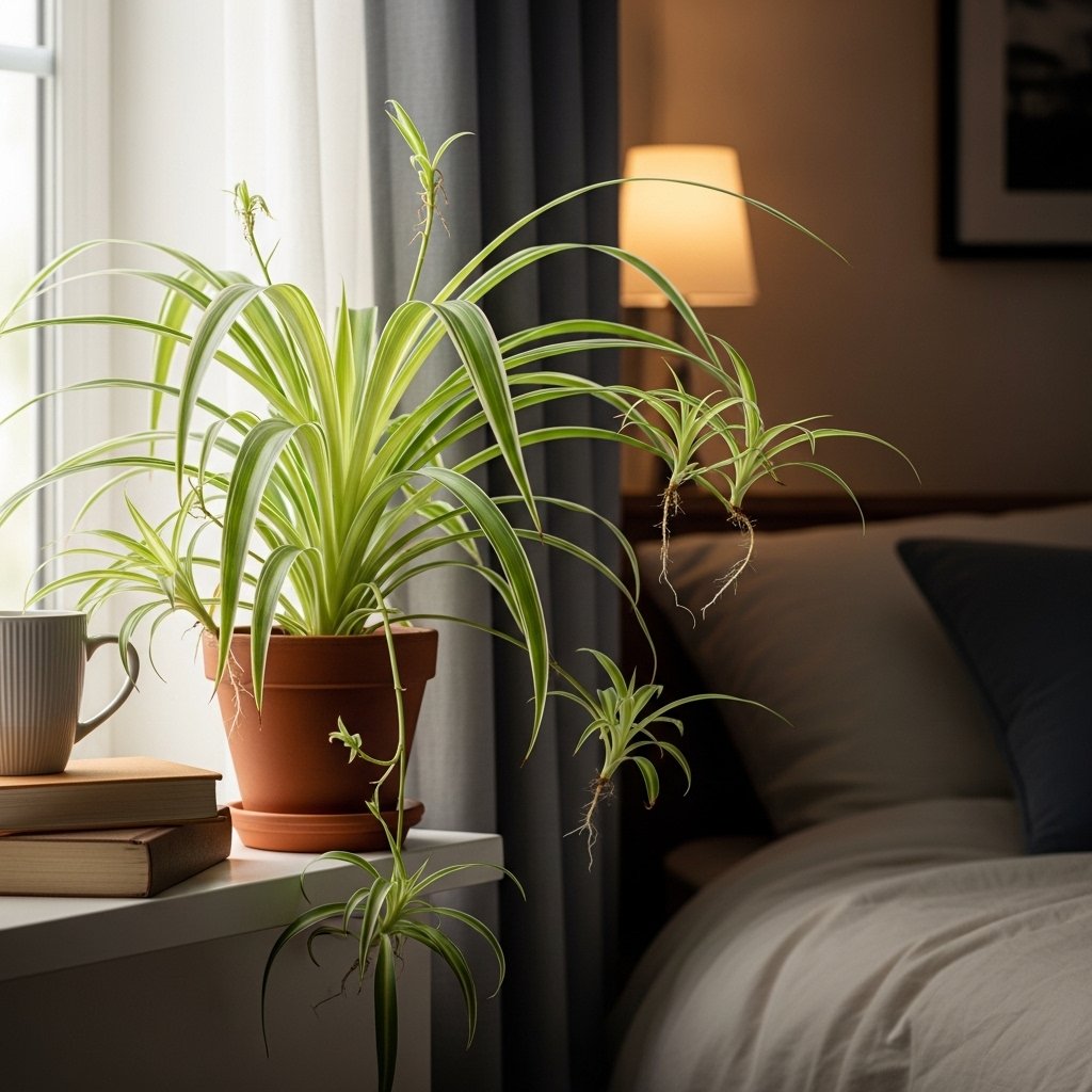Spider plants are resilient, low-maintenance, and can tolerate indirect lighting, making them a great choice for bedrooms. Their long, arching leaves with white stripes create a refreshing visual effect. Spider plants produce small baby plants, or “pups,” which can be propagated to create more greenery around your home. They also purify the air and thrive in average indoor temperatures. Spider plants are ideal for windowsills, hanging planters, or shelves where natural light is minimal.