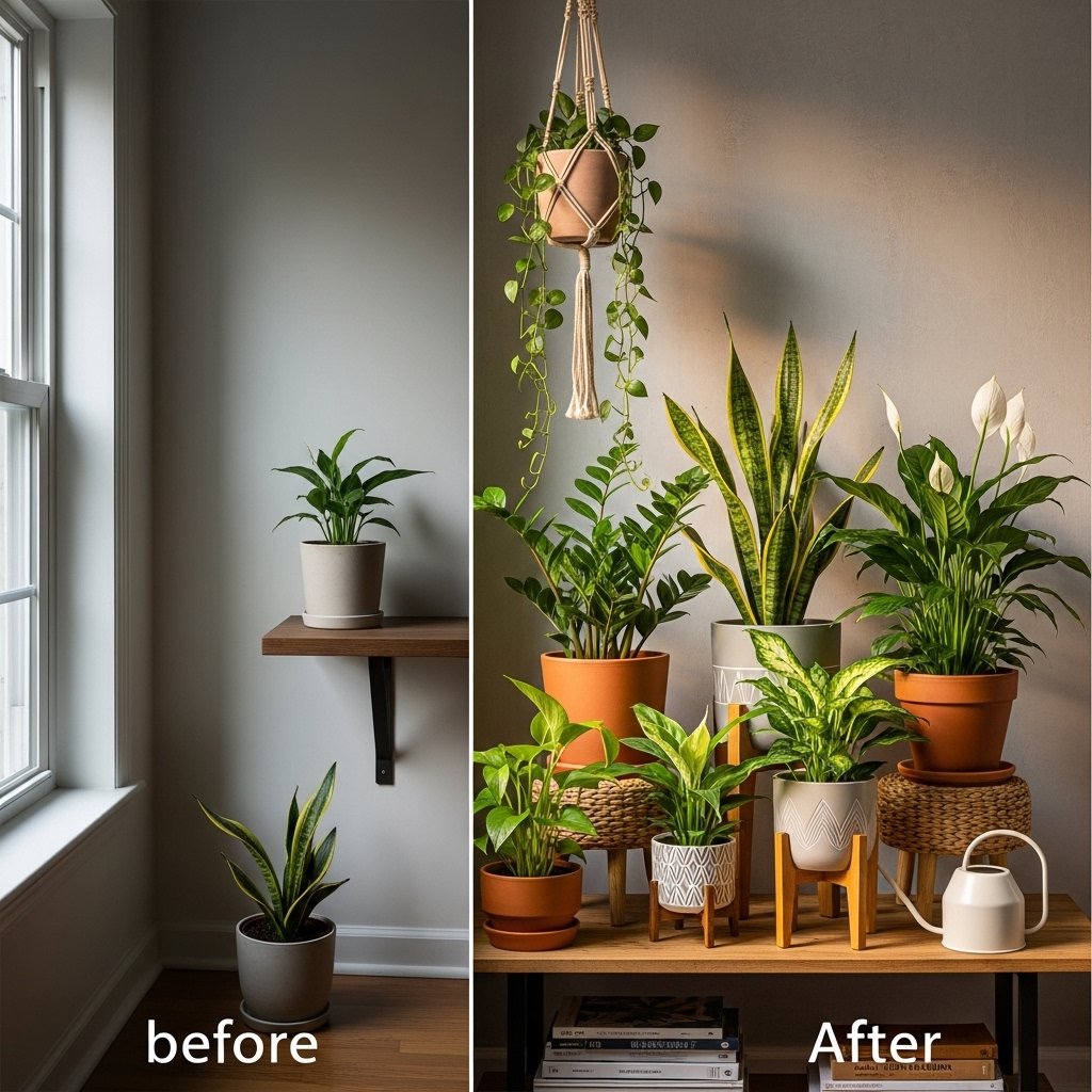 - Choose the Right Spot – Place plants near windows with indirect light or in softly lit corners.