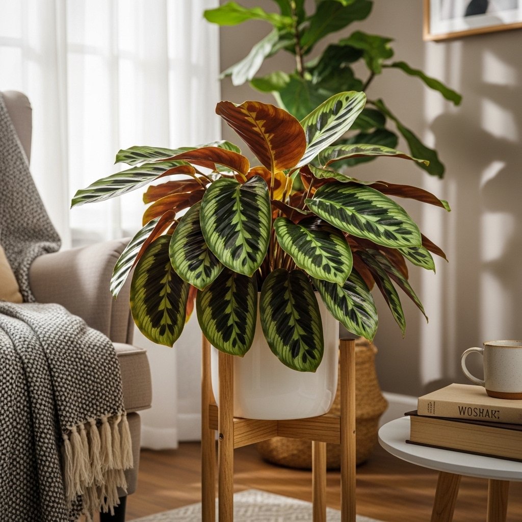 Calathea plants are known for their striking leaf patterns and ability to thrive in low light conditions. Their leaves often feature unique designs with shades of green, purple, and silver. These plants prefer slightly higher humidity and regular watering to maintain their vibrant look. Calatheas are perfect for adding a decorative and artistic touch to indoor spaces. They work well in bedrooms, living rooms, or plant shelves.