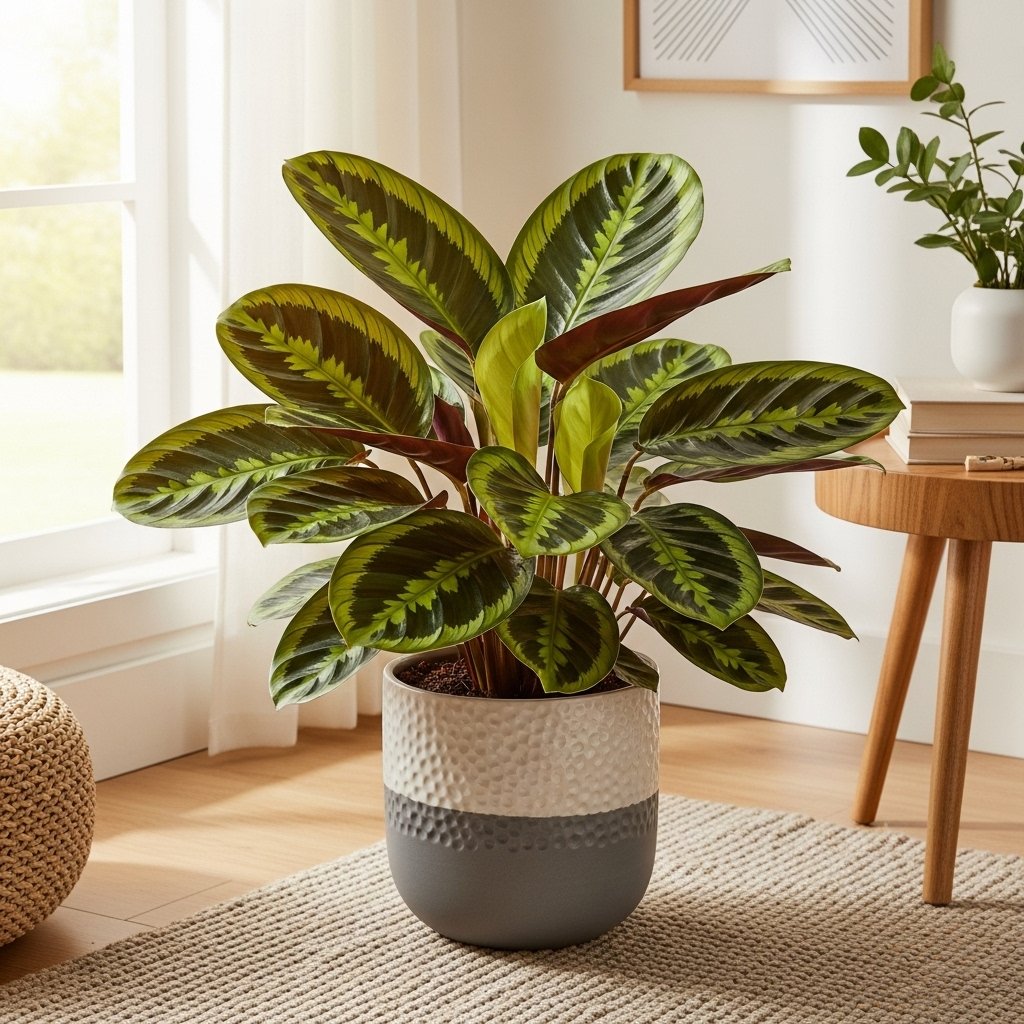 The Calathea Plant is admired for its unique patterned leaves and vibrant appearance. In Feng Shui, it symbolizes new beginnings and growth. This plant thrives in indirect light and requires consistent moisture. It is ideal for creating a peaceful and harmonious environment. Its decorative appeal makes it a favorite for modern interiors.