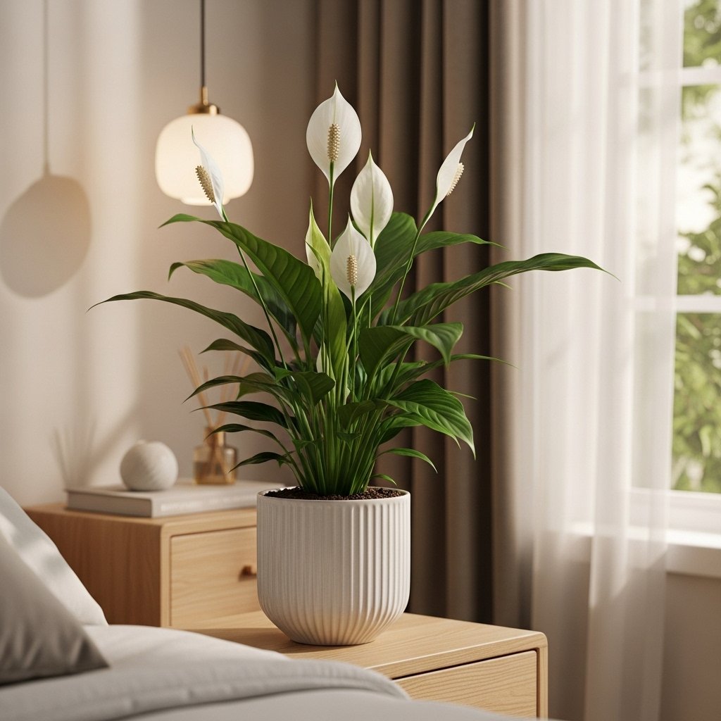 The Peace Lily is a beautiful plant that represents peace, purity, and harmony. It is often used in Feng Shui to balance energy and create a calming environment. This plant thrives in low to medium light and requires regular watering. Placing it in bedrooms or living rooms can enhance relaxation and emotional well-being. Its elegant white flowers add a touch of sophistication to any space.