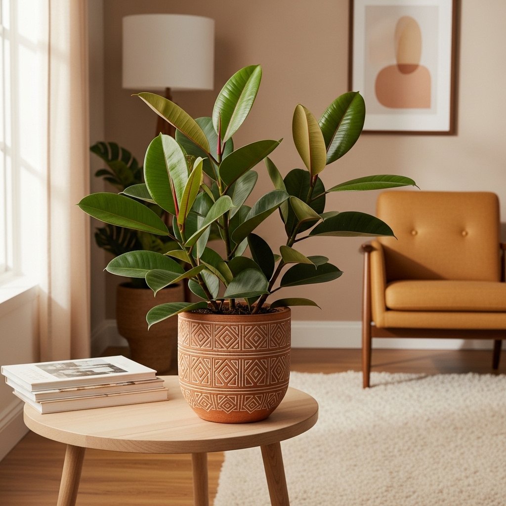 Rubber plants are known for their large, glossy leaves that add a bold and dramatic touch to interiors. They grow well in bright, indirect light and need moderate watering. With proper care, rubber plants can grow quite tall, making them excellent floor plants. They are perfect for filling empty corners and creating a lush indoor environment. Their deep green or burgundy leaves add richness and depth to home decor.