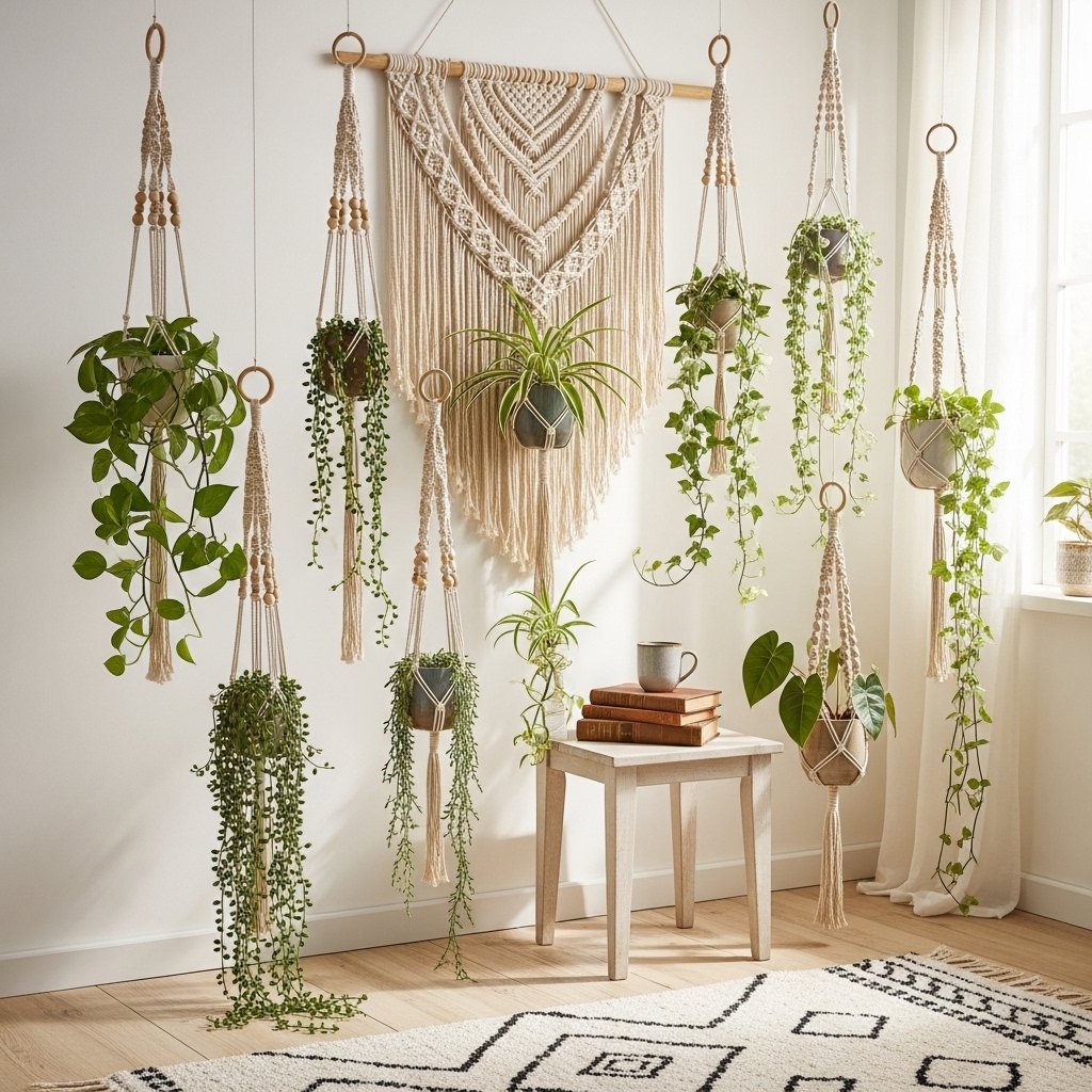 Macrame wall plant hangers add a bohemian touch to your indoor decor. These handcrafted hangers are perfect for displaying plants in a soft and artistic way. They can be hung from wall hooks or mounted rods for a layered look. This style works best with trailing plants that enhance the visual flow. It creates a relaxed and cozy environment in your home.