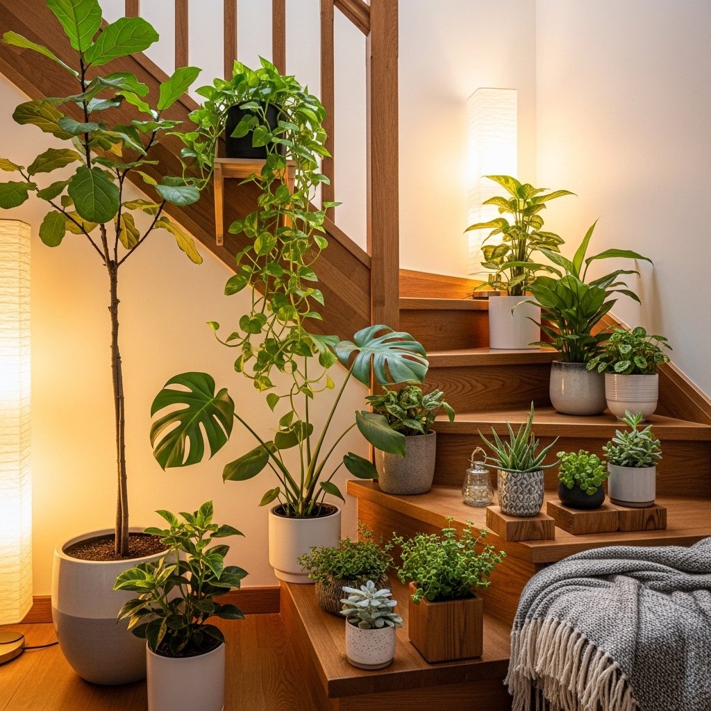Low-maintenance indoor plants like pothos, snake plants, peace lilies, and small ferns work best for stairs. These plants thrive in indirect sunlight and don’t require frequent watering. Choosing hardy plants ensures your staircase remains beautiful without much effort.