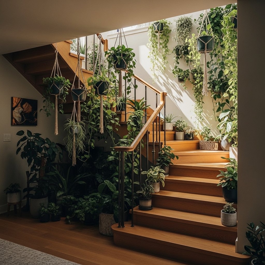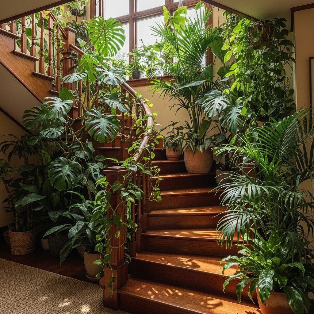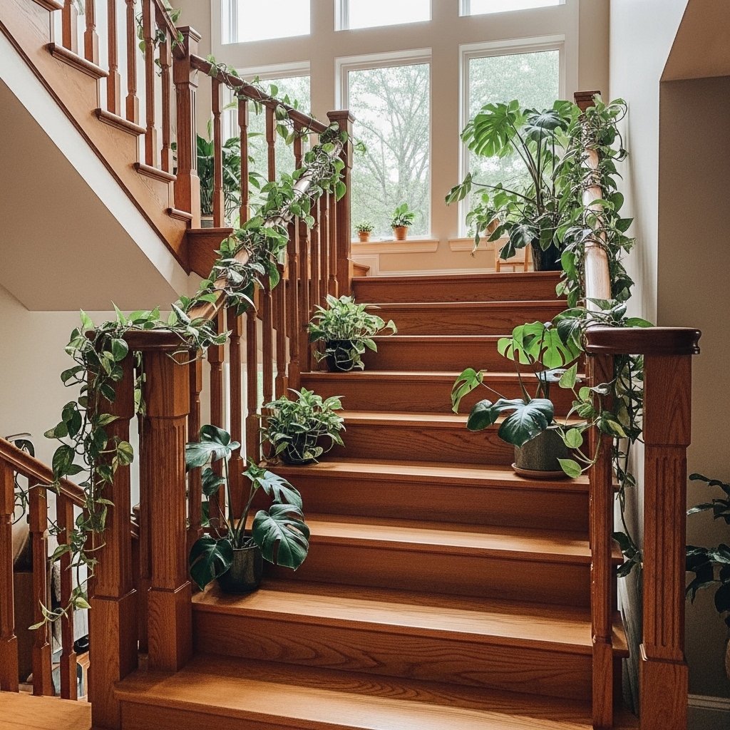Blog > Home > Indoor Plants & Home Decor > Wooden Staircase with Indoor Plants: A Natural and Elegant Home Design Trend